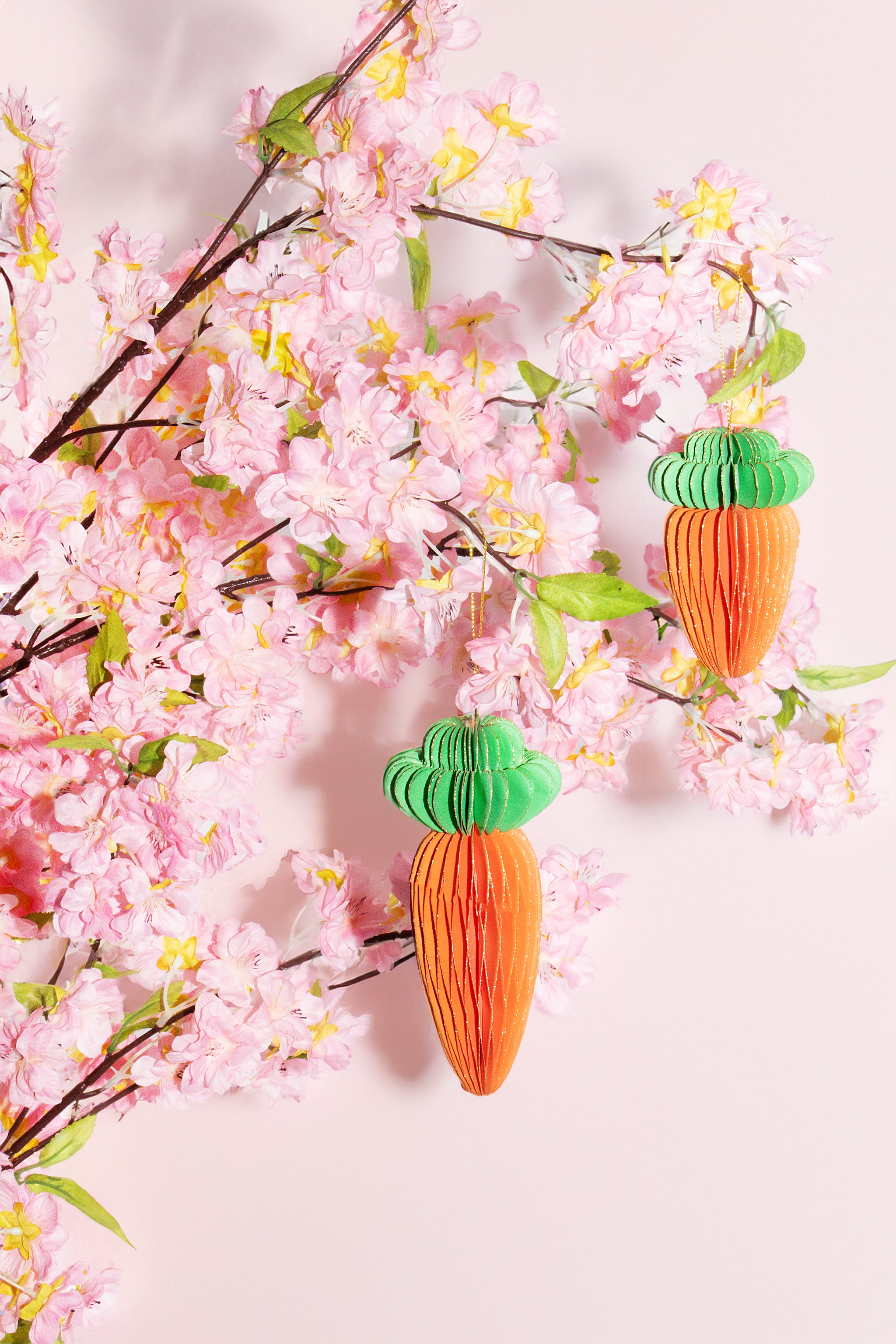 Hauche deinem Zuhause frühlingshafte Magie ein mit unseren handgefertigten Papier-Osteranhängern in Karottenform!