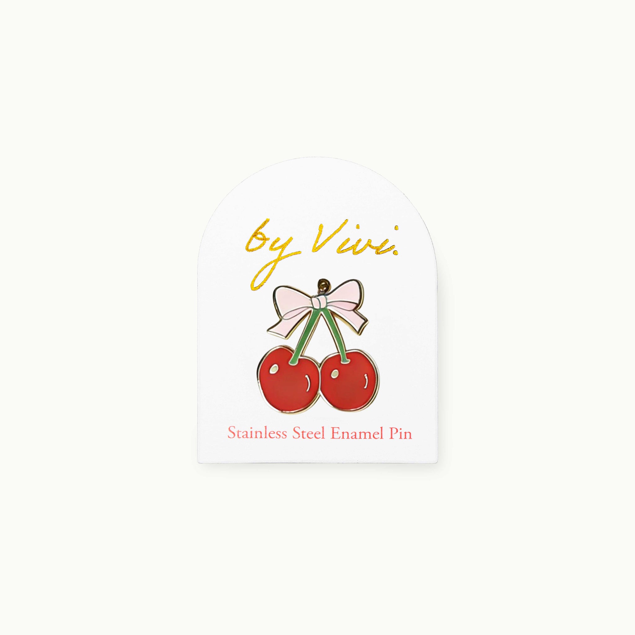 Ansteckpin aus Metall und Emaille in Form von Kirschen mit Schleife.
