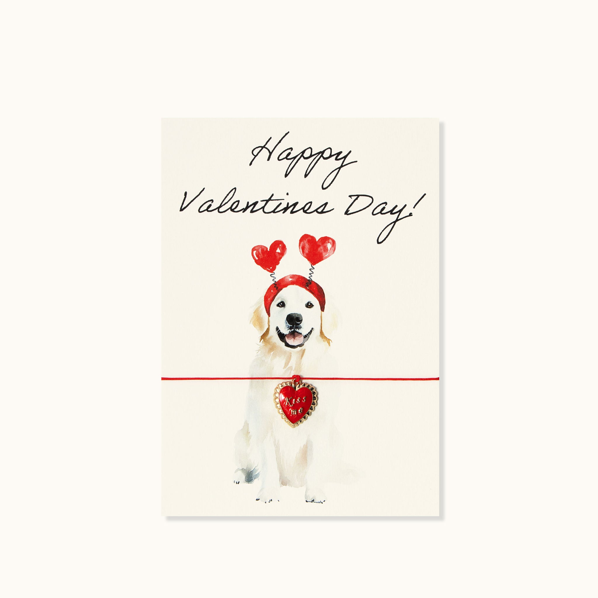 Die perfekte Karte, um den Valentinstag mit einem treuen Golden Retriever zu feiern. Armband mit einem Golden Retriever-Anhänger an einem roten Band, das an die wahre, treue Liebe erinnert. 💖🐾